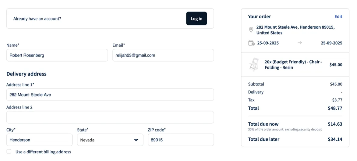 Select your items, quantities, and dates. Our instant quote tool calculates costs upfront, including delivery and setup fees—no surprises later!